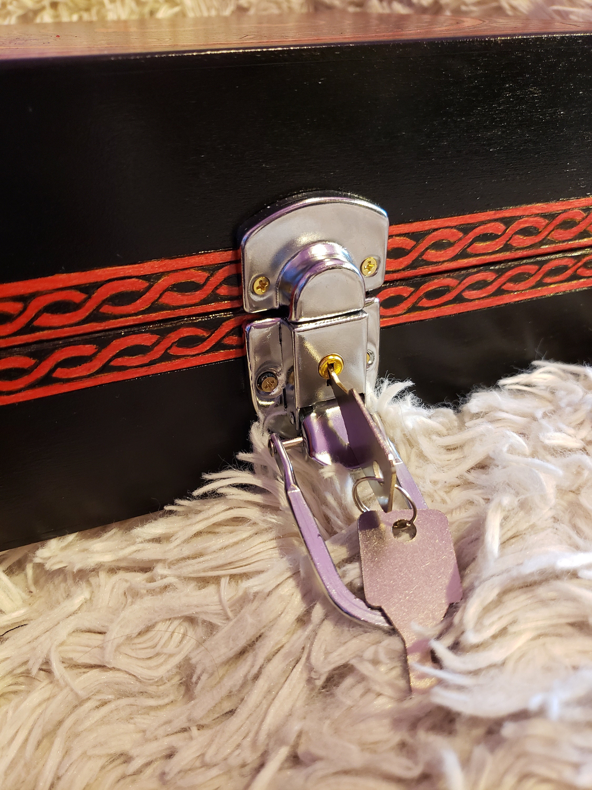 Since poplar is a semi-hard wood, I affixed a sturdy, locking clasp to the front. Two keys are included.